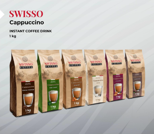 SWISSO Cappuccino vereint Instantkaffee, cremige Süße und Zucker zu einem köstlichen Geschmackserlebnis. Einfach Wasser hinzufügen und in Sekundenschnelle einen Cappuccino wie im Café genießen. Dank der vielfältigen Geschmacksrichtungen bietet jede Tasse ein unvergessliches Geschmackserlebnis.